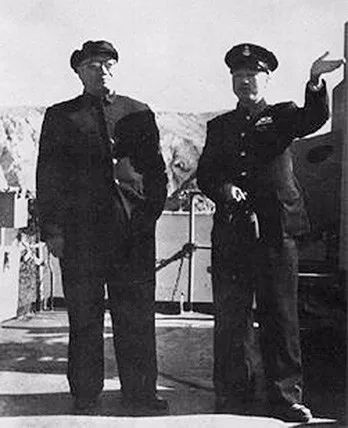◆1953年,刘华清(右)陪同刘伯承在大连视察海军舰艇部队。