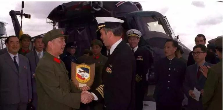 ◆1980年,时任副总参谋长的刘华清访问美国海军。