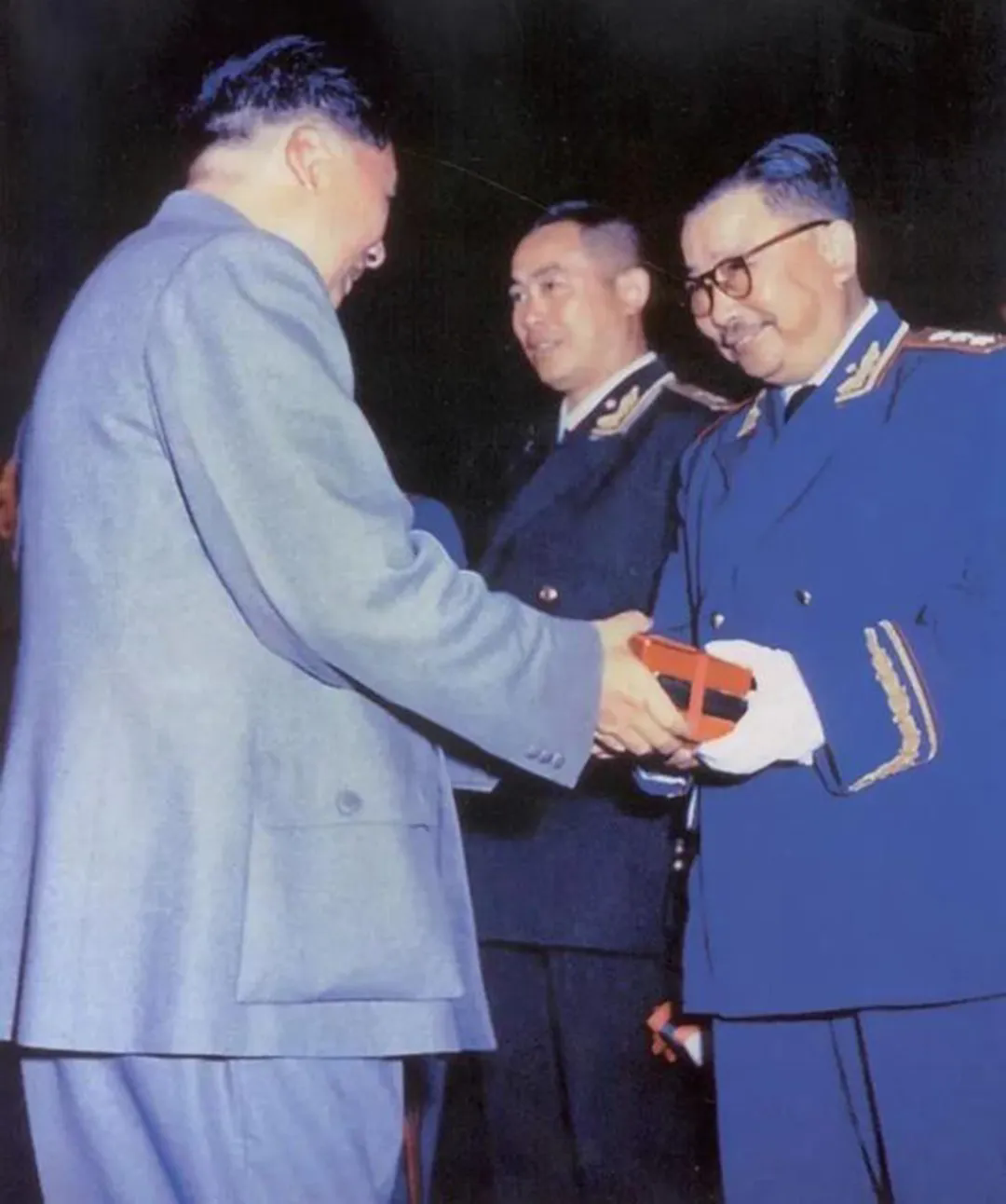 ◆毛主席为李克农授勋。