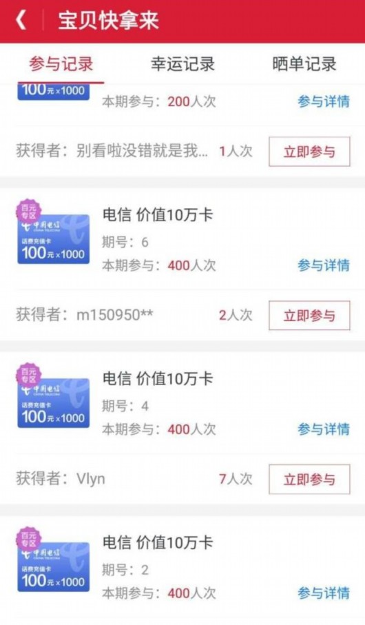 记者看到,一张1000元的手机充值卡不到10秒就卖光,并立刻开奖,而几乎同时下一轮的售奖又开始了。仅在一个平台上,1000元的充值卡已经开奖11万余次。
