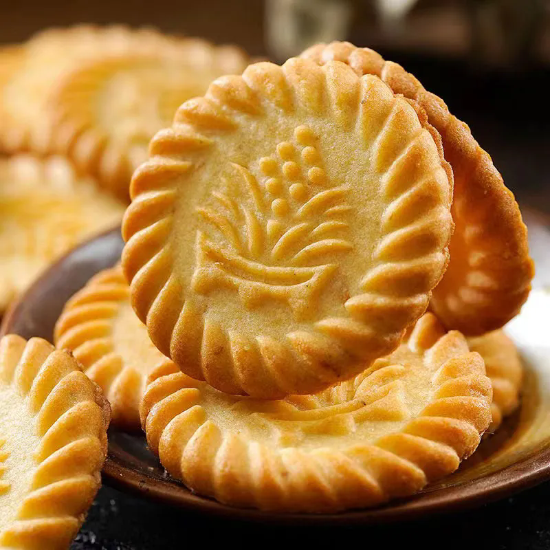 刚开始发明的万年青饼干,有甜咸两个口味,咸的是葱油味,甜的是奶油味。但不知道为何,不过数年,甜味万年青便销声匿迹,得以“一统万年”的是许多人觉得奇怪的咸味万年青。说是咸味,其实是略带着些甜的,一种混合暧昧的咸香。妈妈说,这就是葱油的味道。这种香气成为包括我在内的全部小朋友的深刻记忆。幼儿园下午茶时间,小朋友们的白色瓷碟子里,静静躺着两块饼干,旁边一杯热牛奶,袅袅冒着热气。刚刚睡醒午觉的你,一下子就可以辨别出这是万年青,凭的就是那股葱香。葱油咸香泡着热牛奶吃,是我们的童年快乐源泉。
