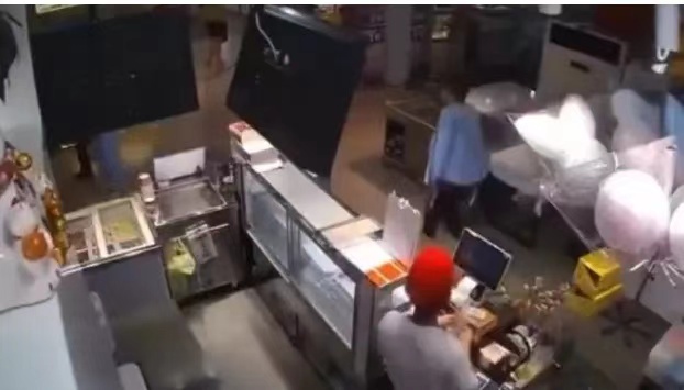 从事后流传出来的监控可以看到,林某两手各持一把刀,在一阵阵的尖叫声中大步向前。