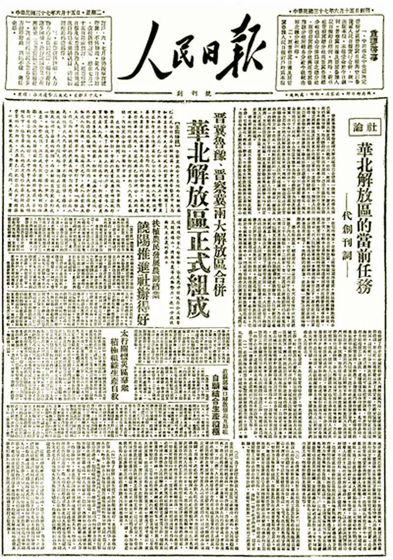 为新中国奠基之创办大党报——《人民日报》:毛主席两次题写报头,曾同时出版“北平版”“平山版”