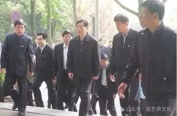 胡锦涛身着一件朴素的深色夹克,面带微笑,仅携数位随行人员,步履轻盈地走进了这座古老的书院。