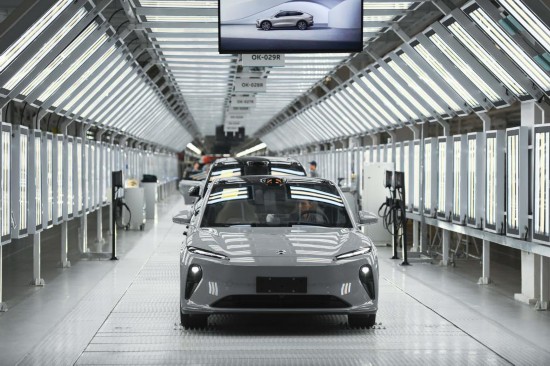这是安徽省合肥市新桥智能电动汽车产业园蔚来第二工厂内的新能源汽车生产线(5月9日摄)。新华社记者张端摄