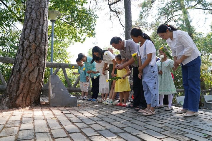 在江西省瑞金市叶坪乡华屋村,村民在松树下祭拜烈士(2022年9月17日摄)。新华社记者 周密 摄