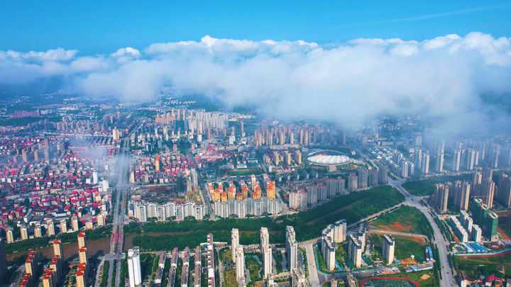 江西省瑞金市城区景色(2024年5月6日摄,无人机照片)。新华社发(刘黎明 摄)