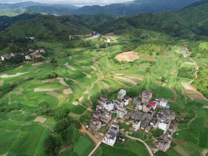 江西省赣州市于都县段屋乡寒信村景色(2019年6月13日摄,无人机照片)。新华社记者 周密 摄