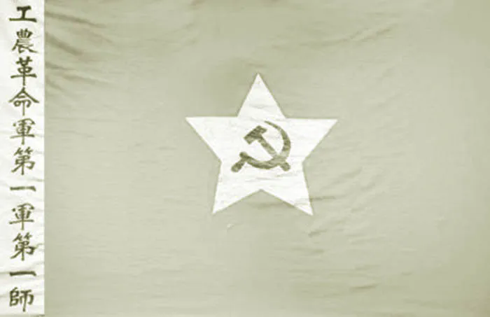 《何长工回忆录》一书中这样记述:“卢德铭同志从中央回来,担任部队的总指挥。由我负责设计并制作了中国工农革命军第一军第一师的军旗,鲜艳的红旗中间一枚大五角星,星中是镰刀和斧头的图案,紧靠旗杆有一条十厘米宽的空白,上写着工农革命军第一军第一师的番号,十分威武、漂亮。”