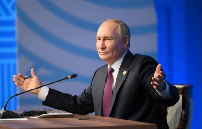 据英国《泰晤士报》网站10月24日报道,俄罗斯总统普京表示,他欢迎特朗普的承诺,即如果这位共和党人重返白宫,他将结束乌克兰战争。普京补充说他相信这是真诚的。