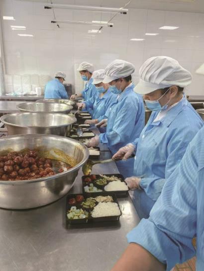 因此,2022年起,光明邨配餐升级中央厨房将助老配餐覆盖至黄浦全区,并增设晚餐配送服务。目前,光明邨配餐分公司承担着全区10个街道的助餐需求,可提供12元、15元、20元三种套餐供应,确保全区老人享受高品质配餐服务,服务量每日超过2000客。