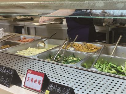 首先,这里设有长者专属的沙发专座,优先老年人用餐,在菜品上也做了个性化的定制,根据老年人膳食指南,立足营养健康、方便易食的标准,既要确保餐品的丰富度,也要满足老年人对蛋白质、膳食纤维的足够摄入,同时增设了减盐减糖的特供菜品,做到了软糯清淡轻负担。