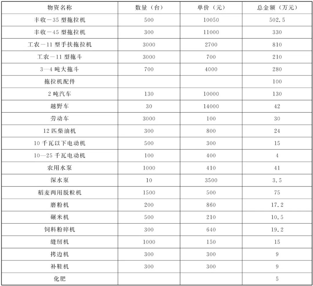同年10月5日,上海知青办召开会议,讨论知青安置相关工作,提出每年支援黑龙江、吉林、安徽、江西2000台大型拖拉机的计划。1974年,上海知青办对于物资援助有了更为详尽的安排,其在11月19日报市委、市革委会的报告中提出了此后三年的物资援助计划:每年拟拨价值3000万元左右的物资援助有关省区,其中30%为无息贷款,用于经济困难较大的青年点。