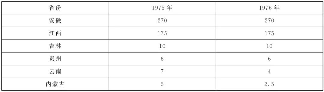 表2 1975年、1976年上海实际支援各知青安置地无息贷款金额表 单位:万元