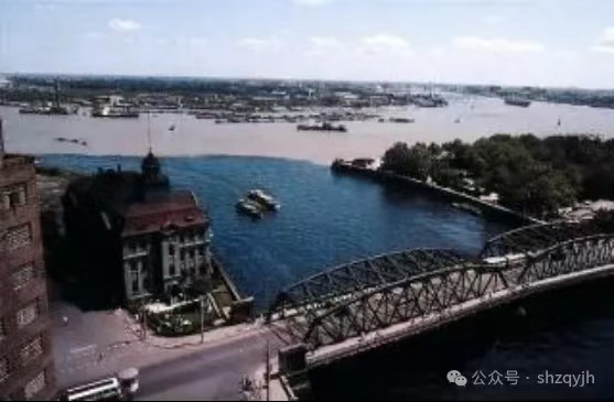 当年黑黄分明的苏州河黄浦江交汇处(摄于1982年)