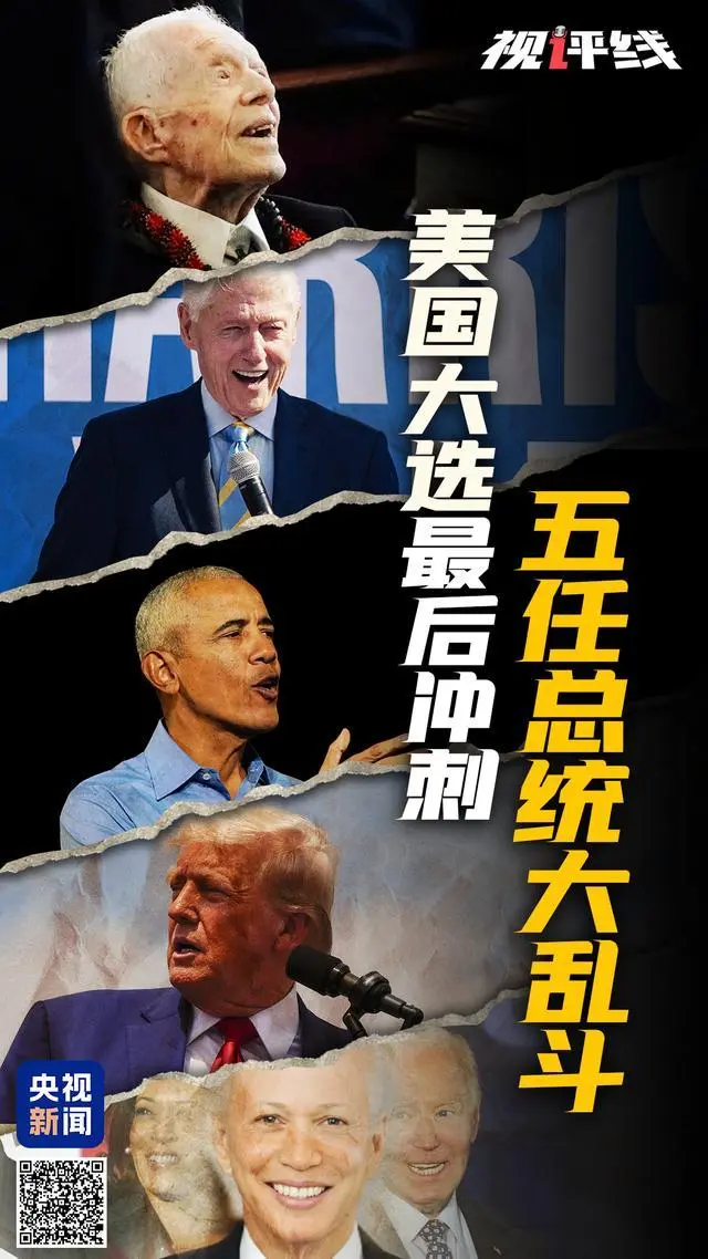 于是进入冲刺阶段的美国大选仅在“总统”这个层面就出现了前所未有的乱局:最初参选的两位总统,一位出局了但没完全出局,一位已经遭到三次暗杀差点物理出局;除此之外又有奥巴马、克林顿和卡特三位前总统进场搅局,这届美国大选,硬生生从“二老相争”变成了“五王之战”。