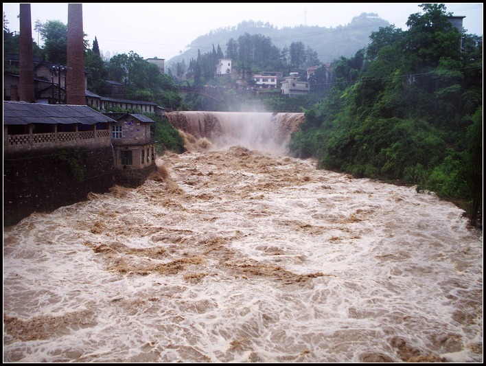 就在这宛若仙境的地方,却孕育着巨大的天灾——山洪。每到雨季,时有爆发。那天早上出工时还是绵绵细雨,渐渐变成暴雨。待到收工回家时,我怀疑走错路了。原本熟悉的,潺潺流淌的及膝小溪,顿时变成浊浪滚滚,吞噬生命的洪水猛兽。一群老表在河边大声议论着,原来早上栓在此处吃草的一头牛被困在巴掌大的孤岛上,受惊的牛随时有挣脱缰绳被洪水冲走的危险,为救牛大伙心急如焚。