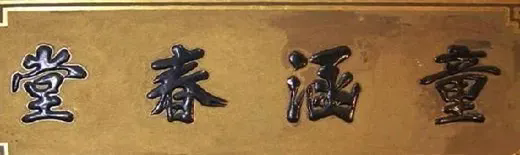 过去, 店铺为显示资金雄厚,会特地用金箔贴字制作招牌,也就是金字招牌。清同治二年(1863),童涵春堂第四任掌门人,童善长的曾孙童祥权(1842—1904)就别出心裁,请能工巧匠制成金底黑字匾额,高悬店堂中央。