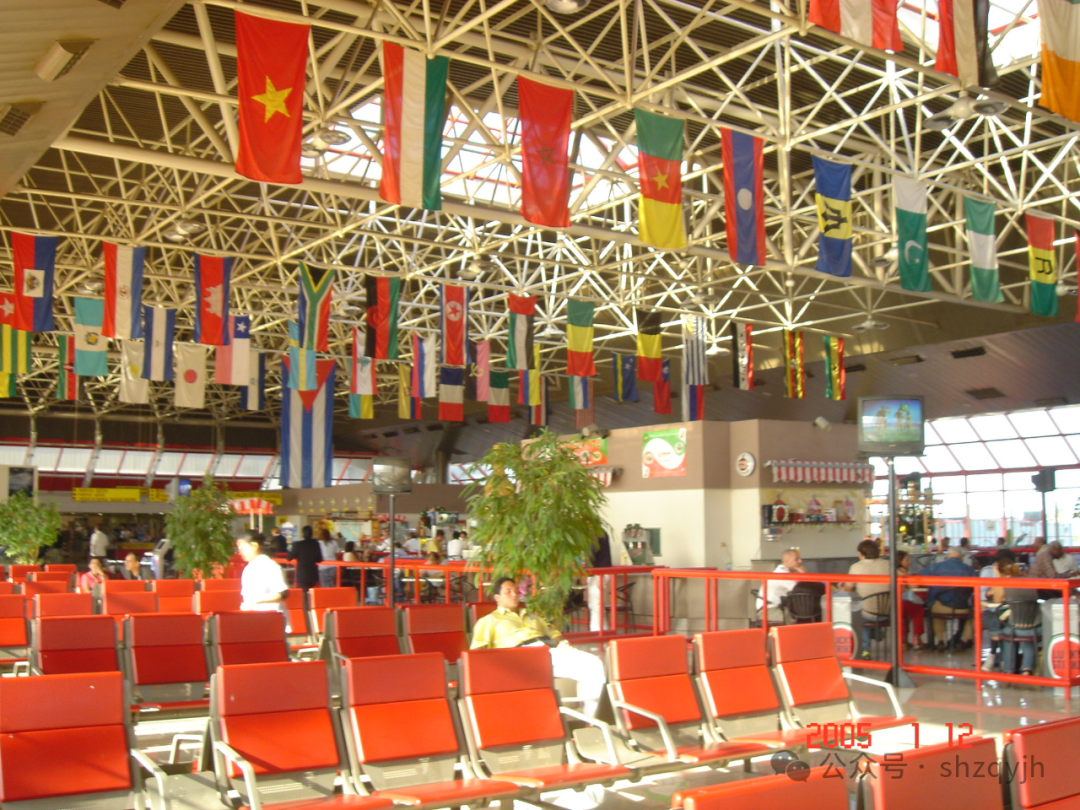 这是我第一次到另一个社会主义国家,同行的伙伴也很想知道这究竟是什么样的国家。走出机仓,看到候机大厅里挂满各种国旗,甚至有日本的太阳旗,走廊两旁涂满红色。大厅里人不多,也不显得冷清,有不少售货亭,咋一看,有点集贸市场的感觉。后来在巴西圣保罗机场也有类似的感觉,候机大厅里挂着有浓郁色彩的画面,可能这就是拉美风格,不象欧洲国家的机场里那样宁静、简洁。
