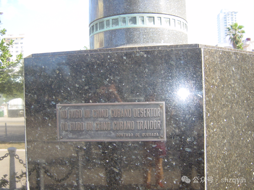 古巴很适合种植甘蔗和烟叶,以前是从非洲输入劳动力的,后来受到舆论谴责,开始从中国输入劳动力。1847年,第一批中国人来到古巴。鼎盛时,古巴的中国人有30万之多。19世纪末,中国人参加了古巴的反对西班牙殖民主义统治,中国人表现英勇,哈瓦那专门为此树立了一个华人纪念碑,上面刻着“在这场战斗中,没有一个中国人是逃兵,没有一个中国人是叛徒”。