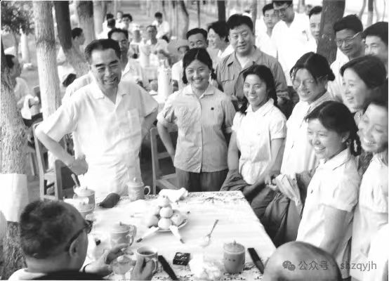 周恩来总理先到试验场农业队葡萄园参观。看完葡萄园后,他与前来欢迎的试验场场长孙天恩、技术员魏志洲等干部、工人做了短暂亲切的谈话。接着,周恩来总理驱车来到二分场一连。他兴致勃勃地参观了长势茁壮的棉花机械化中耕追肥复式作业。参观结束后,周恩来总理在1号条田北侧宽阔、蓊郁的榆杨相间的林带里,接见了总场领导干部李光等和一分场的上海支边知识青年代表杨永青、雍凤兰、郑月华、孙贵娟、卓爱玲、朱兆华、陈雪琴、亓毓纯、应志毅、张立勇、魏淑荃等11人。周恩来总理、陈毅副总理与他们进行亲切的谈话,当得知他们中部分人出身资产阶级家庭时,语重心长地教导:出身于剥削阶级家庭和有复杂社会关系的人,都要看他现在的表现和立场。一个人的出身不能选择,但前途是可以选择的。周总理的教导,成为他们工作、生活的座右铭。以后,他们在军垦农场这个大熔炉里千锤百炼,一个个都成长为农场生产建设中的中坚骨干。
