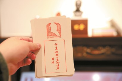 印有巴金名言“讲真话,把心交给读者”的卡片。 解放日报记者 李茂君 摄