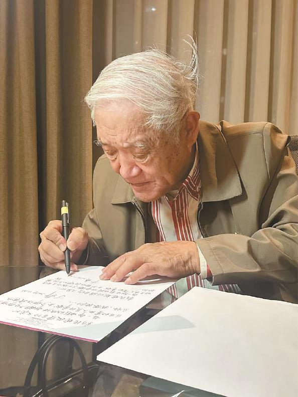 是啊,我想要跟我们的读者说,牛犇非常认真地想要题好这词,犹如他从影近80年来,始终非常认真地面对每一个角色,无论大小,哪怕在演职员表中很难找见,哪怕只有一句台词,甚至没有台词,更甚至只是一个背影,他都始终怀抱着对表演的精益求精,和对观众的满腔热爱,去完成。75周年的上影,也正是有了这样的一位位艺术家,成就了品牌与经典。