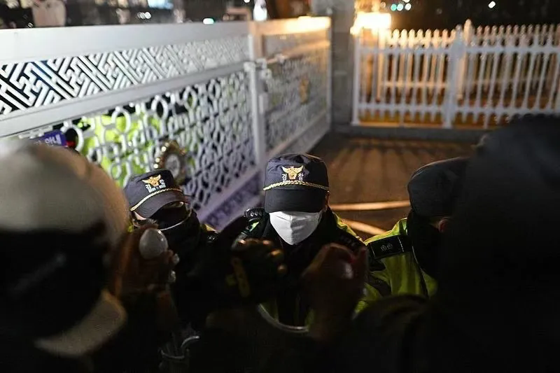 韩国国会前出现冲突,在野党辅佐团和警方对峙。大批民众高喊口号,要求尹锡悦撤回戒严令。国会上空有直升机盘旋,韩国军队已进入国会维持秩序。