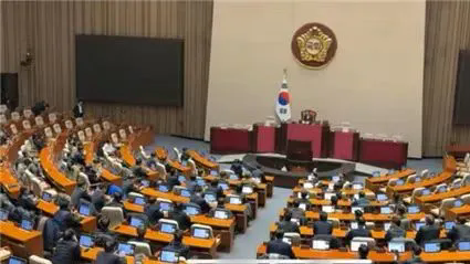 ▲韩国国会全体会议通过“要求解除紧急戒严令”决议