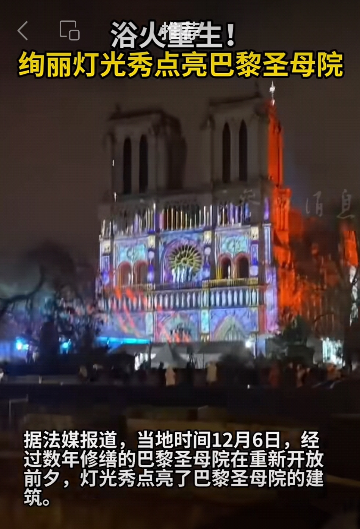 法国7日晚在位于塞纳河畔的巴黎圣母院举行仪式,庆祝2019年失火的巴黎圣母院经过5年修复后重新开放。