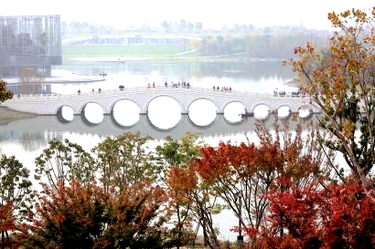 秋色中的世博文化公园十一孔桥。 本报记者 李茂君 摄