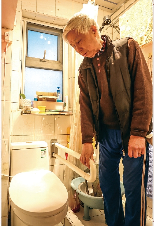 八旬老人赵先生家焕新了智能马桶盖和可调节扶手,为冬季起夜如厕提供了安全舒适的保障。 文汇报记者 袁婧摄