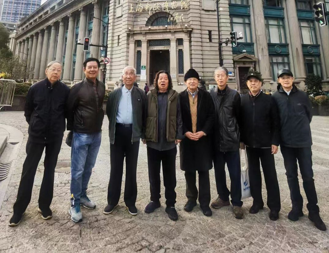 陈固(右二)与知青研究会的朋友们在邮展上合影(编者注)