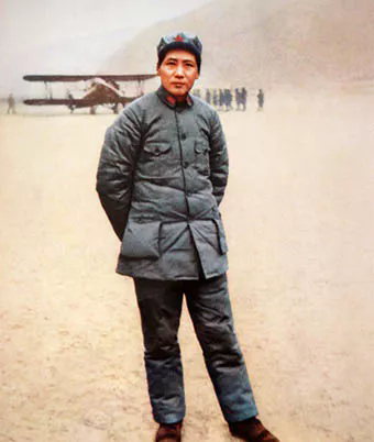 ◆1937年,毛泽东在延安机场。