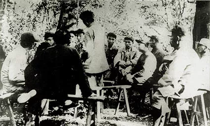 ◆1931年11月,在瑞金中共苏区第一次代表大会上,站立者为毛泽东。