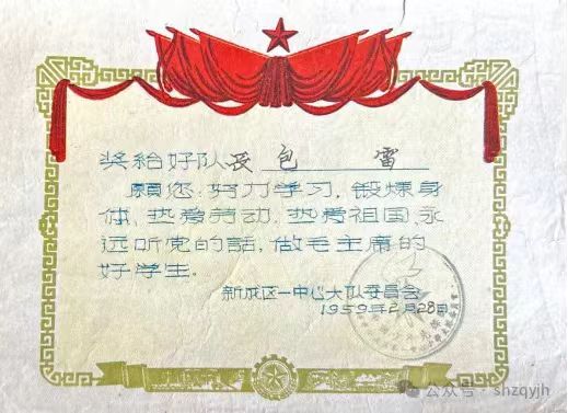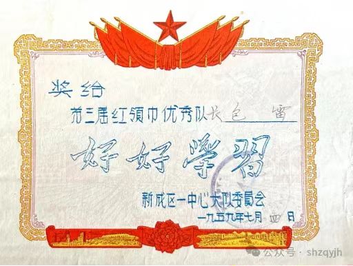 时间过得真快,我们升入四年级了。四年级的学生在小学阶段就算是大孩子了。一天,大队辅导员曹植之老师找到我,说要跟我谈谈。曹老师当时在我眼里是个身高超过一米八身材挺拔的山东汉子,他说一口带着山东口音的普通话,鼻梁上架着一副白色塑料镜框的眼镜,平时总是笑眯眯的,在参加少先队活动时戴着红领巾,朝气蓬勃很精神。他一本正经地问我:“中队长同志,如果大家选你当大队长,你是否愿意到大队部工作 ,在课余时间组织少先队活动,为同学们服务?”这可把我问住了,因为我从来没有这样想过呀。曹老师接着说,你学习成绩好,学有余力,课余时间多参加一些少先队工作和活动,对于你的学业不会有啥影响。我和团委的几位老师向钱老师了解到,你几年来一直关心帮助家庭条件差学习有困难的同学,得到大家的认可,在同学中有威信。还有,你的父亲在上海市总工会工作,是为工人群众服务的共产党员,他也一定希望你接好父辈的班,从小锻炼为人民服务的本领。听了曹老师这番话,我心里热乎乎的,我觉得不能辜负老师的信任和父辈的期望,如果同学们真的选我当大队长,我一定会珍惜这个锻炼成长的机会,努力为同学们服务。