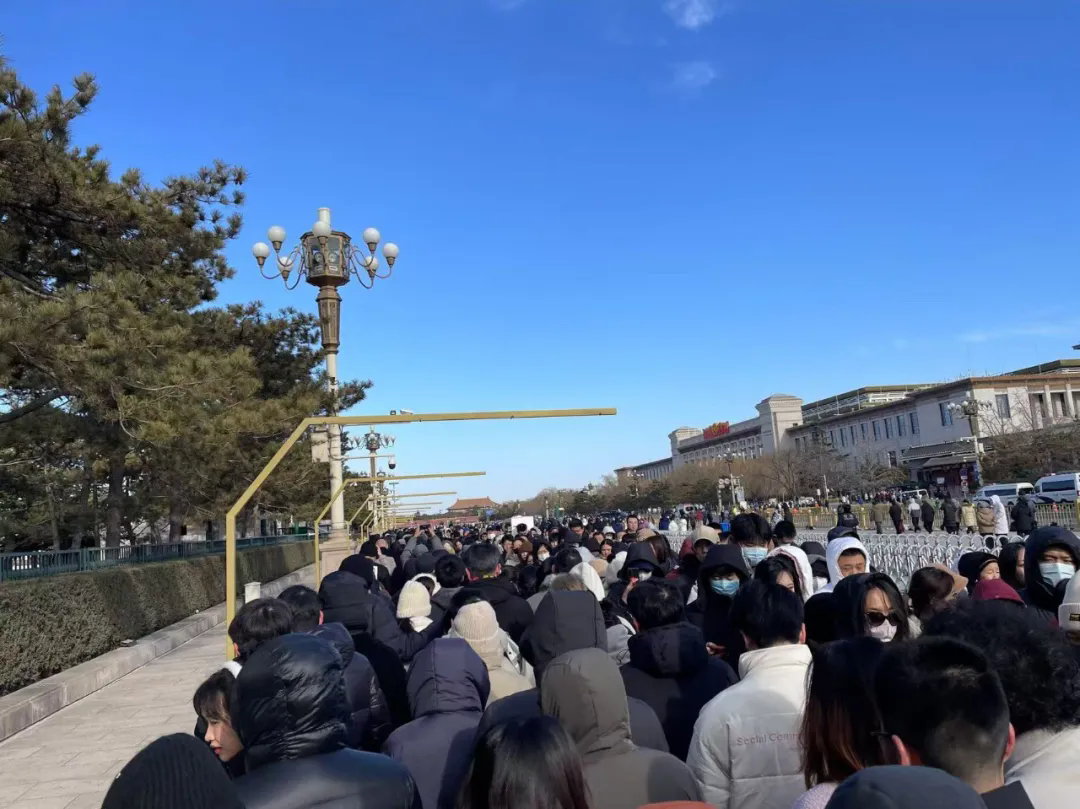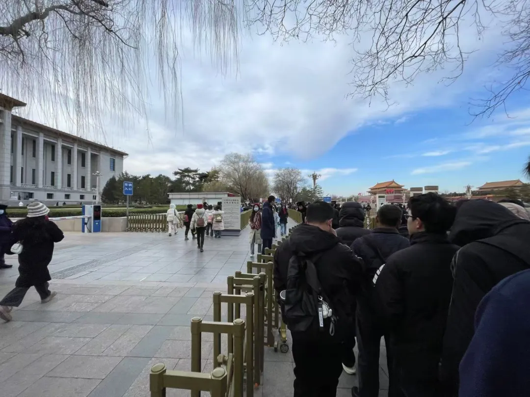 纪念堂东侧,等候瞻仰的人流,弯弯曲曲,像一条静静的大河。