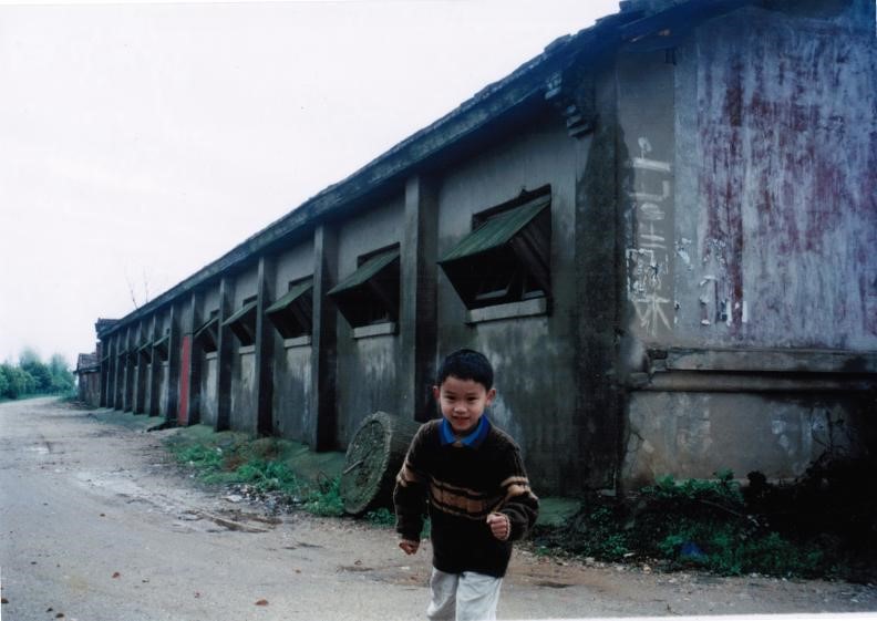 右图是我在团部物资股仓库工作时,住过的第二个宿舍,在天子庙排灌站里。该栋楼一层是排灌站的机房,二楼全部和三楼中间2间是排灌站人员居住。三楼两边2间就给物资股仓库人员居住。我就住在靠马路边的一间,让儿子在边上照了一张。虽然照片照的儿子眼睛闭上了,但后来排灌站改造,此楼拆了,所以留下此张照片还是蛮珍贵的;左图是团部物资股大堤仓库,里面人员就是负责全团基建材料,煤,燃料油品,机电、农机配件的存储、发放等工作。我就在此工作了近4年。仓库里面主要存放机电配件、农机配件。我刚到仓库工作时管理基建材料(如毛竹、木头、砖、沙石等),材料主要在外场地。一年后管理农机配件,就到仓库里面工作。