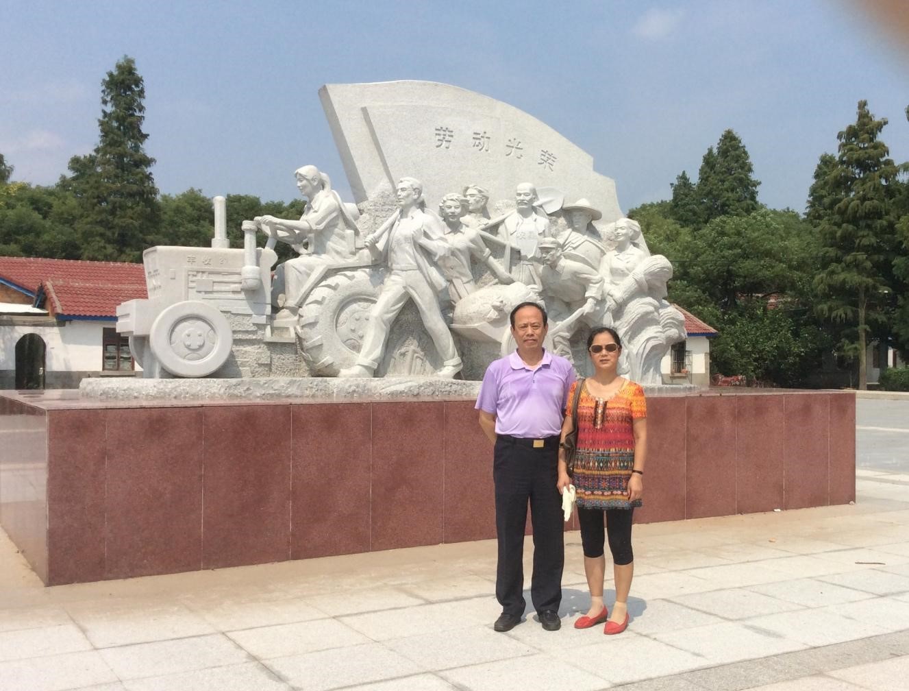 此照是我和爱人在知青广场上的留影,这个知青广场是近年新建的,是在原团部家属区的位置规划出的。知青广场中有一座反映当年劳动场景的雕塑。同时完成的还有知青墙,位于大堤下来往团部去的路上。有文革时期的宣传画,有当年知青的照片。农场还在规划建设知青博物馆。