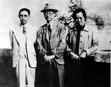 1938年秋,茅盾在广州与夏衍(左一)、潘汉年(中)合影。