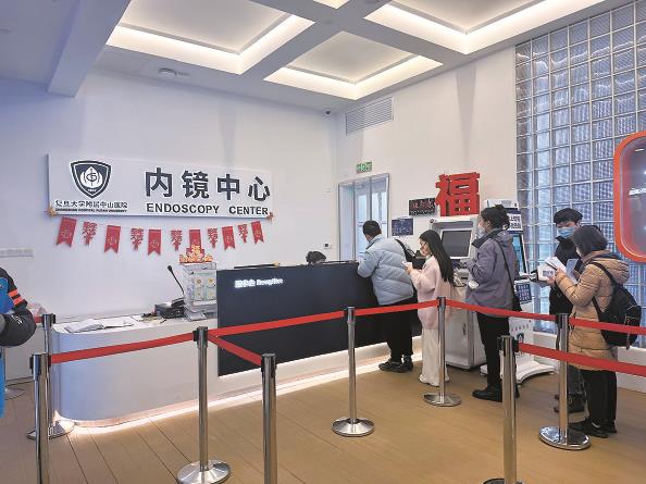 患者在中山医院内镜中心服务台前排队登记 受访者 供图