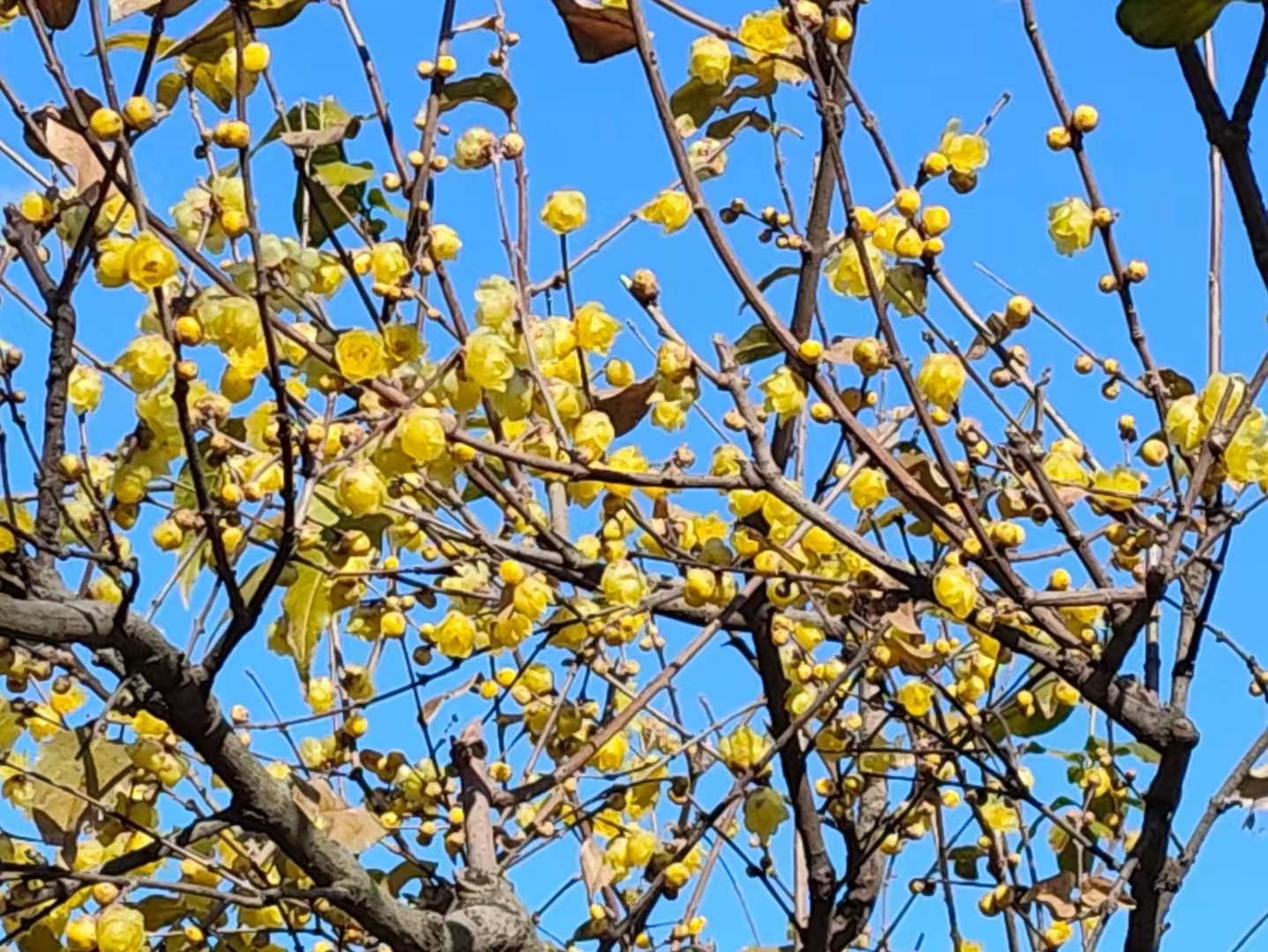 银粟纷扬漫天亮,冷金绽放满枝鲜。