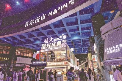 初冬时节,一场“初雪”见证韩剧般的浪漫。去年12月18日至今年1月5日,近30台飘雪机每周末、节假日定点在井亭天地开启“降雪”模式。这场以“弘大星光盛典”为主题的活动,用“雪白”融化了生活的忙碌。