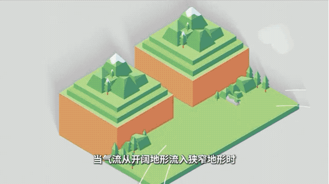 当气流从开阔地形进入狭窄地形时,空气流动速度加快,会产生“狭管效应”。这种突然加强的气流容易把人吹倒、将广告牌等吹落;轻型车辆还可能被大风吹偏甚至掀翻。