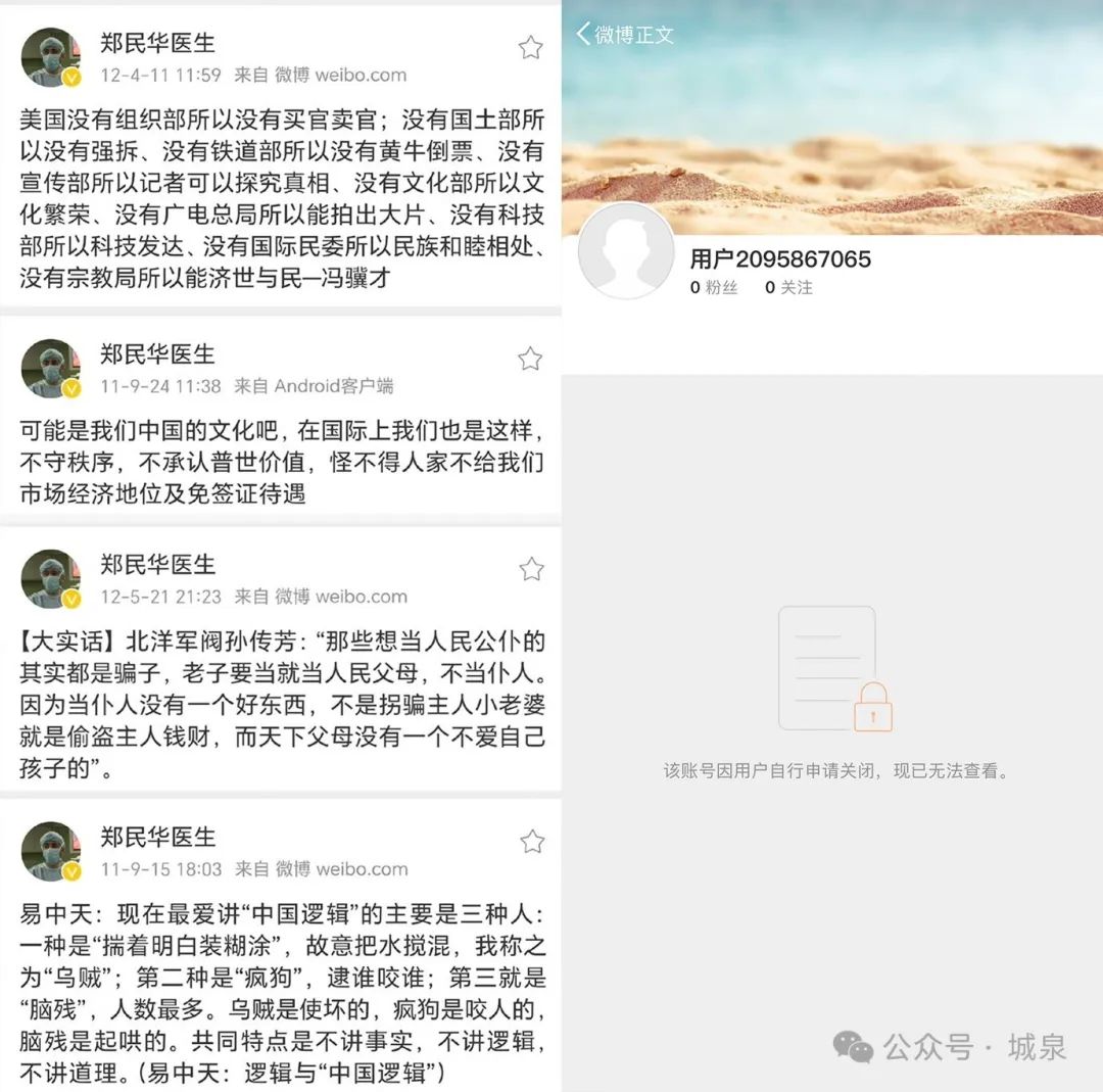 郑民华教授十几年前的微博都被翻出来批判,搞得郑教授自己把微博关了。
