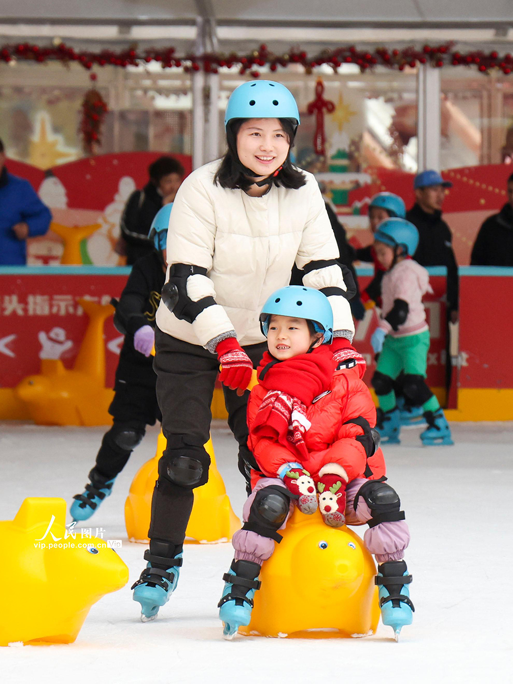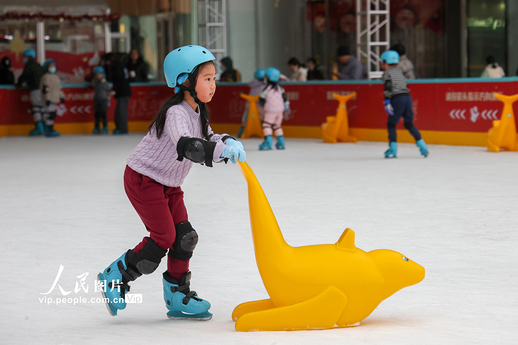 2025年1月23日,在上海市静安区的一家冰场,小朋友们正在体验滑冰的乐趣。随着寒假的到来,许多小朋友选择来到冰场游玩,体验冰上运动的魅力,享受一个充满活力的假期。王初摄(人民图片网)