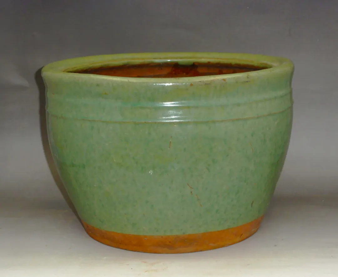 外绿内棕的小陶缸