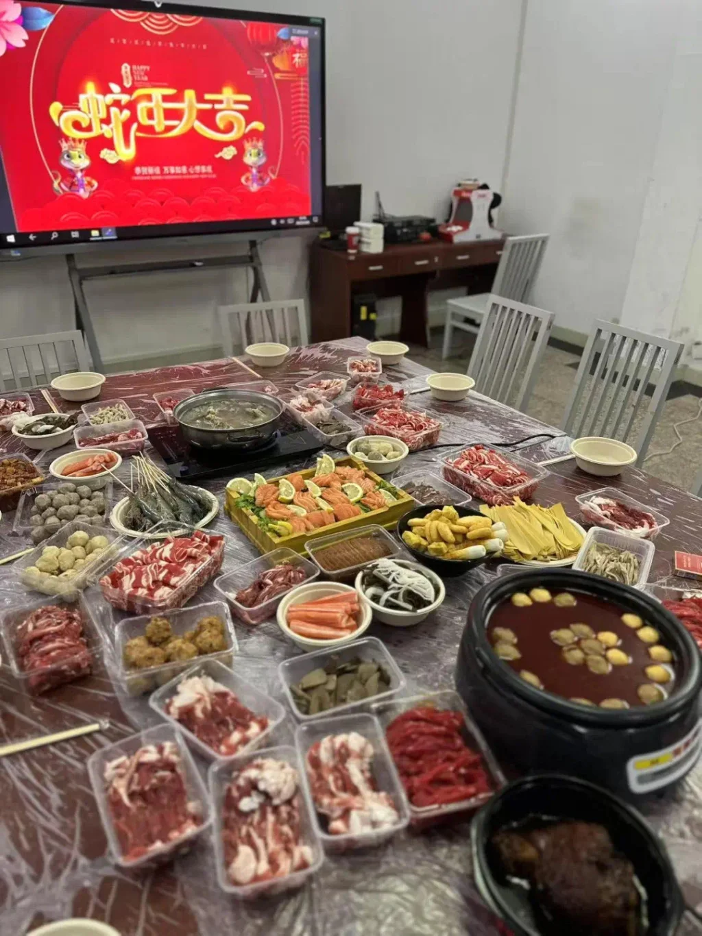 “妈妈你看,这是今晚我们在中队吃的年夜饭,不错吧!”