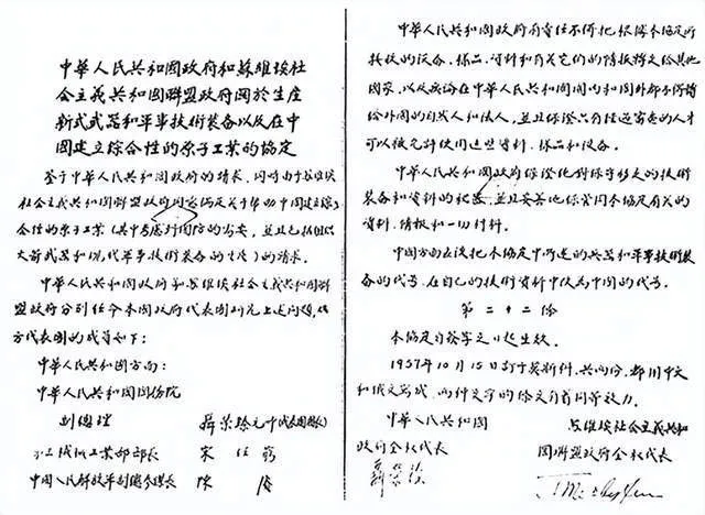 ◆1957年10月15日,中苏签订《国防新技术协定》。