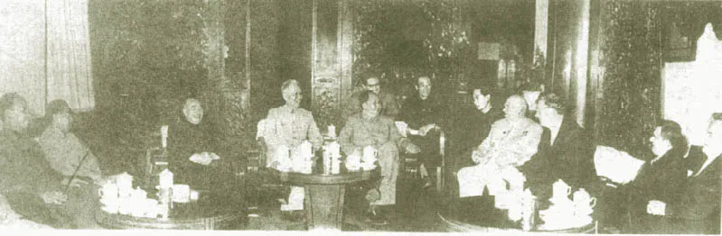 ◆1959年10月2日,毛泽东与应邀前来参加中华人民共和国成立十周年庆典的赫鲁晓夫及代表团成员会谈。